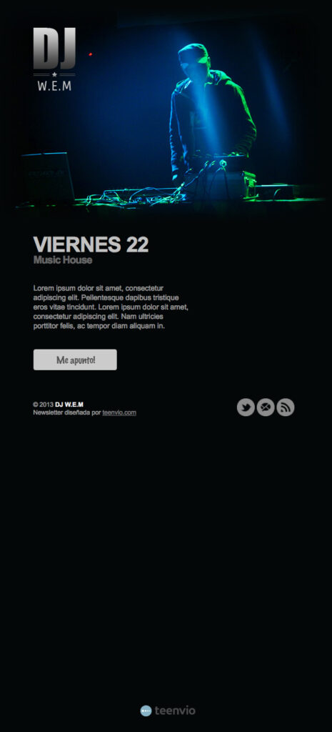 Plantilla HTML gratis Concierto, theme y template para Newsletter. Diseñada para campañas de email marketing y comunicación para eventos, conciertos, música y espectáculos,… adáptala a tu empresa, producto o servicio.