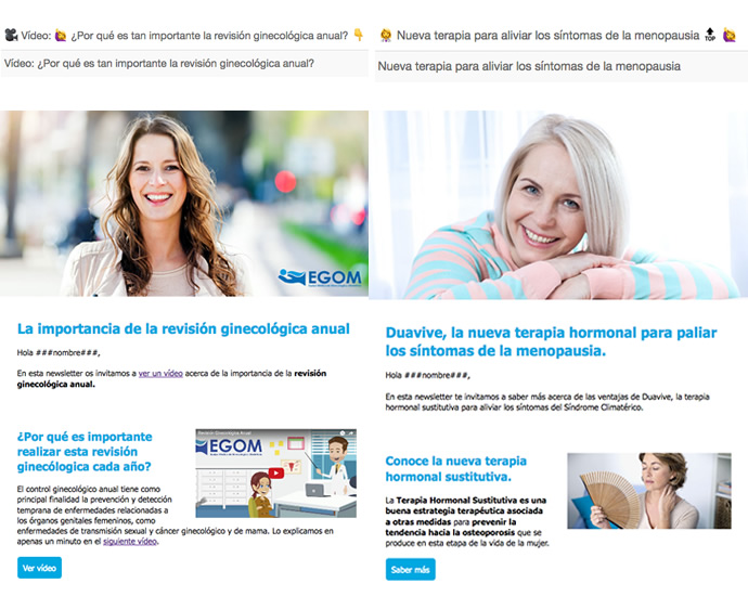 Para ello escogimos a dos clientes con una base de contactos depurada y que realizan de forma periódica envíos a su base de datos: OMÁN Impresores, una conocida empresa de artes gráficas ubicada en Madrid, y EGOM, un equipo de ginecólogos y obstetras que presta servicio en el Grupo HM Hospitales especialistas en el tratamiento de la endometriosis.